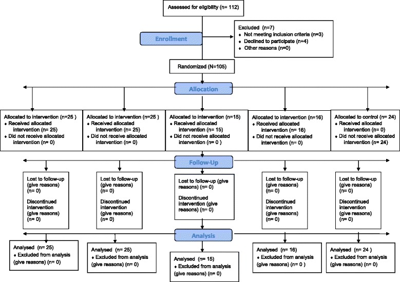 Conclusions: Despite the non-significant findings between the five groups, at any measurement point, there were valuable trends toward significance and confirmed feasibility in a clinical setting. Among the groups there were statistically significant findings for all interventions on anxiety, pain, and self-efficacy. The feasability of the implementation of novel interventions of NVAM and NVAM adds to clinical practice and the CT literature.