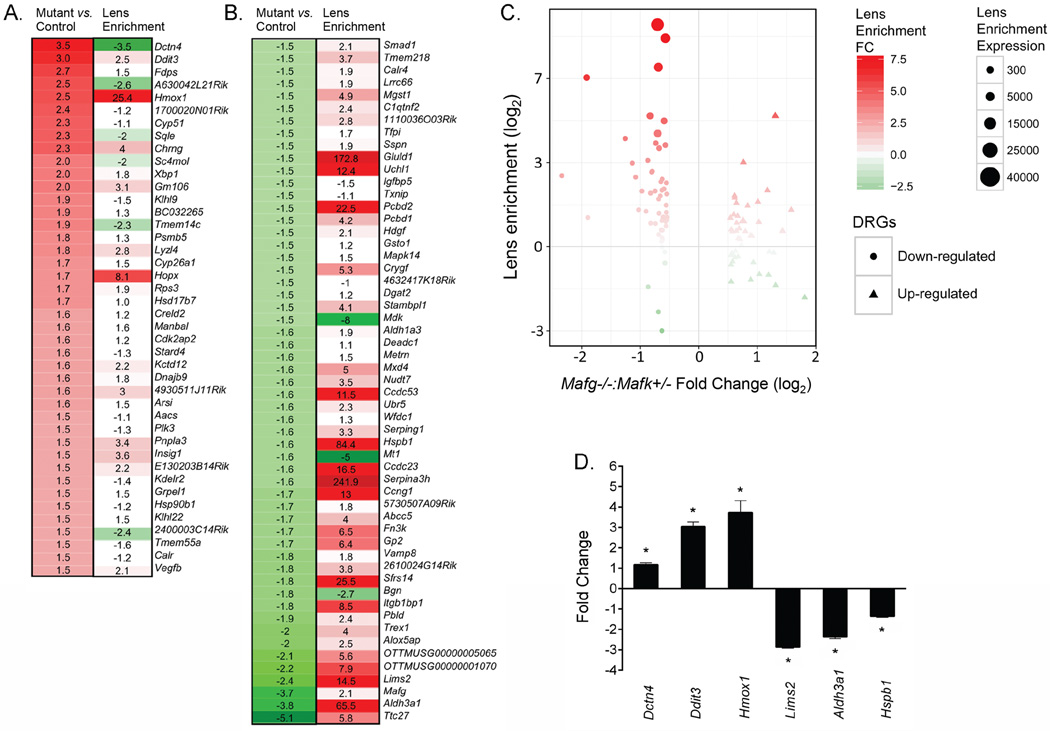 Compound mouse mutants of bZIP transcription factors Mafg and Mafk reveal a regulatory network of non-crystallin genes associated with cataract