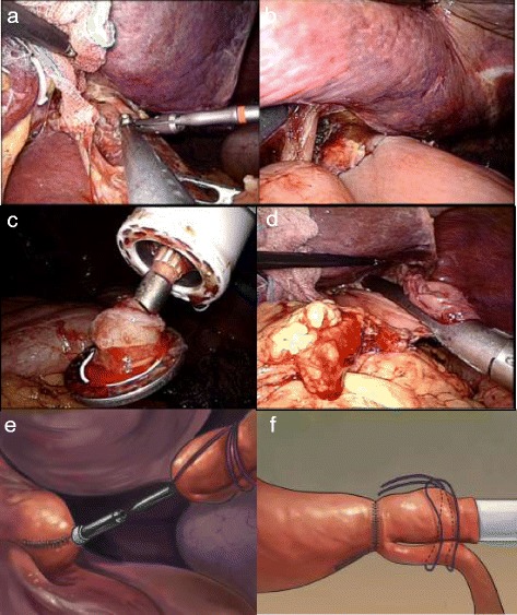 Results: All of the procedures were successful completed with no complication or conversion to open surgery. The mean overall operative time was 193.8 ± 41.8 min, whereas the mean reconstruction time was 32.6 ± 4.6 min. The mean estimated blood loss was 105.7 ± 65.4 ml. The mean diameter of anastomosis measured by upper gastrointestinal contrast X-ray test at 1 month after operation was 2.3 cm. During a median follow-up period of 12 months, neither local recurrence nor anastomosis-related morbidity was observed.