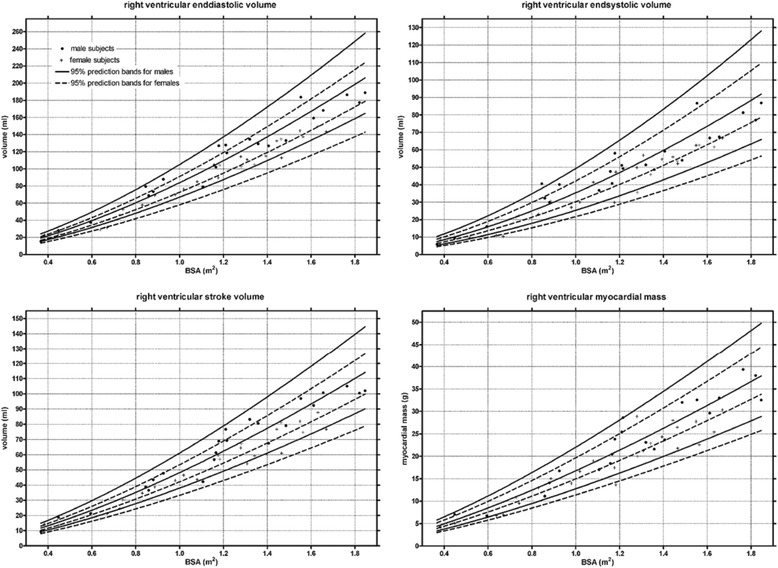 - Alfakih K, Plein S, Thiele H, Jones T, Ridgway JP, Sivananthan MU. Normal human left and right ventricular dimensions for MRI as assessed by turbo gradient echo and steady-state free precession imaging sequences. J Magn Reson Imaging. 2003;17:323–329. - PubMed