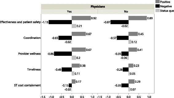 Methods: Using a discrete choice experiment we asked a sample of physicians, policy makers, healthcare executives and researchers from Canada, Europe, Oceania, and the United States to choose between profiles of hypothetical outcomes on eleven healthcare performance objectives which may arise from a healthcare payment system reform. We used a Bayesian D-optimal design with partial profiles, which enables studying a large number of attributes, i.e. the eleven performance objectives, in the experiment.