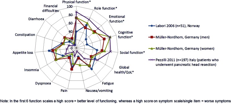 Results: Ninety-one studies were included. The median, age-standardised incidence of pancreatic cancer per 100,000 was 7.6 in men and 4.9 in women. Overall median survival from diagnosis was 4.6 months; median survival was 2.8-5.7 months in patients with metastatic disease. The proportional shortfall analysis showed that pancreatic cancer results in a 98 % loss of healthy life, with a life expectancy at diagnosis of 4.6 months compared to 15.1 years for an age-matched healthy population. Annually, 610,000-915,000 quality-adjusted life-years (QALYs) are lost to pancreatic cancer in Europe. Patients had significantly lower scores on validated health-related quality of life instruments versus population norms.