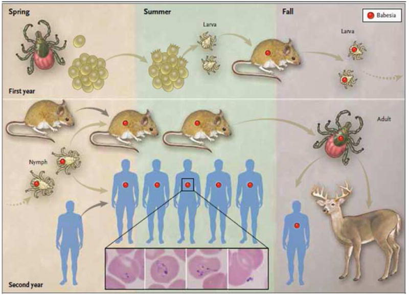 - Hunfeld KP, Hildebrandt A, Gray JS. Babesiosis: recent insights into an ancient disease. Int J Parasitol. 2008;38:1219–37. - PubMed