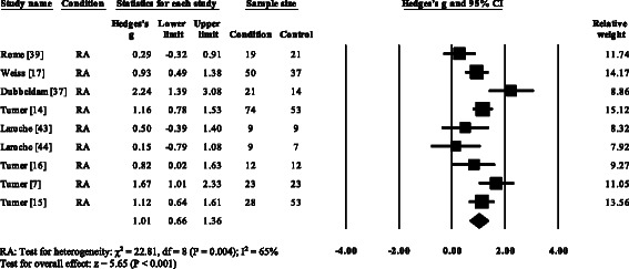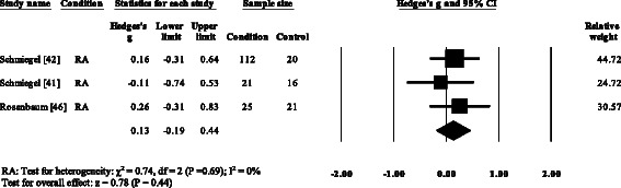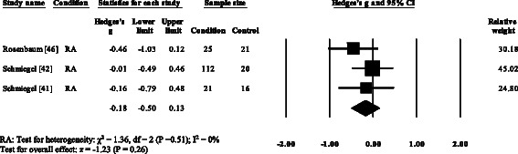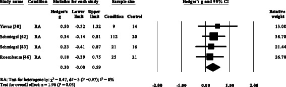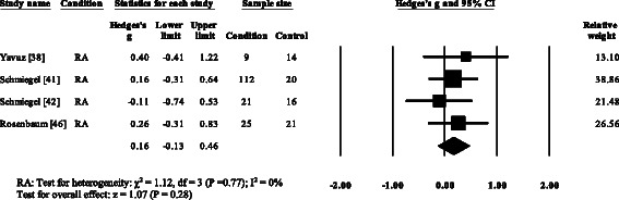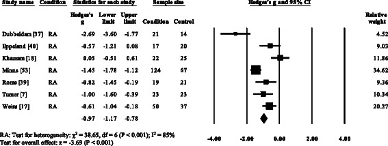 Methods: An electronic literature search was performed on Medline, CINAHL, SportsDiscus and The Cochrane Library. Methodological quality was assessed using a modified Quality Index. Effect sizes with 95% confidence intervals (CI) were calculated as the standardised mean difference (SMD). Meta-analysis was conducted if studies were homogenous.