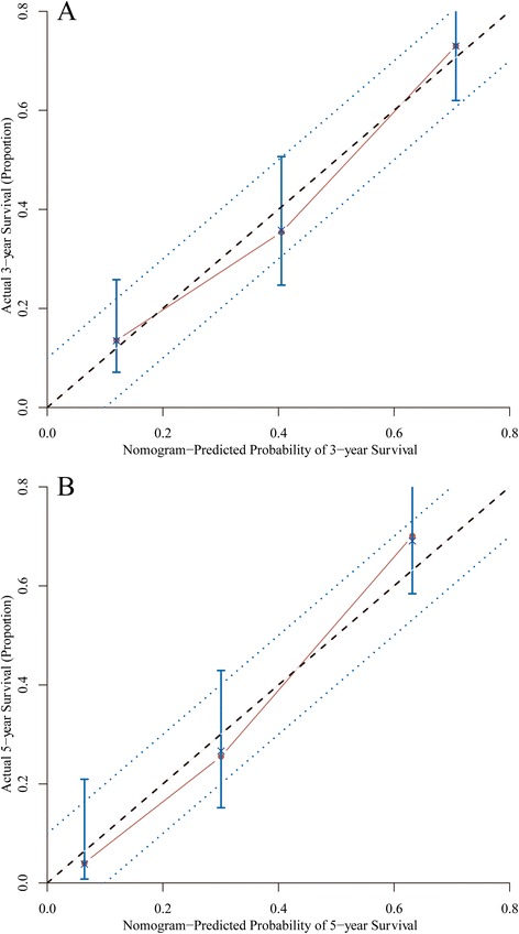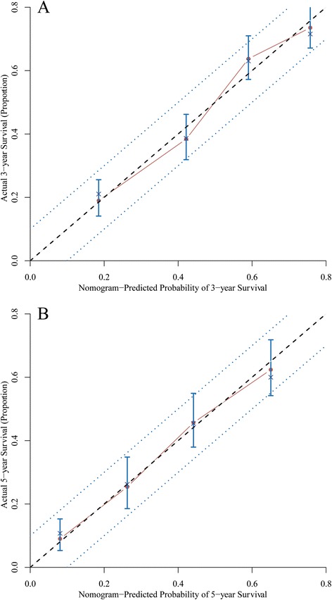 Methods: Patients from the Surveillance, Epidemiology, and End Results Program (from 1988 to 2011) and the First Affiliated Hospital of Xi'an Jiaotong University (from 2005 to 2010) were collected retrospectively. Preselected multiple potential interactions were tested irrespective of significance as nomogram parameters. And the Harrell's C-index was used to estimate the accuracy of the nomogram system. Model validation was performed using bootstrap to quantify our modeling strategy.