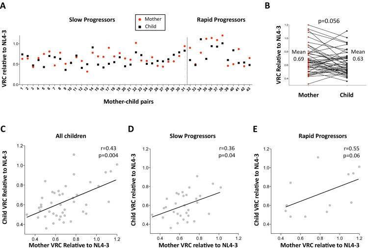 HLA class I polymorphism has a major influence on adult HIV disease progression. An important mechanism mediating this effect is the impact on viral replicative capacity (VRC) of the escape mutations selected in response to HLA-restricted CD8+ T-cell responses. Factors that contribute to slow progression in pediatric HIV infection are less well understood. We here investigate the relationship between VRC and disease progression in pediatric infection, and the effect of HLA on VRC and on disease outcome in adult and pediatric infection. Studying a South African cohort of >350 ART-naïve, HIV-infected children and their mothers, we first observed that pediatric disease progression is significantly correlated with VRC. As expected, VRCs in mother-child pairs were strongly correlated (p = 0.004). The impact of the protective HLA alleles, HLA-B*57, HLA-B*58:01 and HLA-B*81:01, resulted in significantly lower VRCs in adults (p<0.0001), but not in children. Similarly, in adults, but not in children, VRCs were significantly higher in subjects expressing the disease-susceptible alleles HLA-B*18:01/45:01/58:02 (p = 0.007). Irrespective of the subject, VRCs were strongly correlated with the number of Gag CD8+ T-cell escape mutants driven by HLA-B*57/58:01/81:01 present in each virus (p = 0.0002). In contrast to the impact of VRC common to progression in adults and children, the HLA effects on disease outcome, that are substantial in adults, are small and statistically insignificant in infected children. These data further highlight the important role that VRC plays both in adult and pediatric progression, and demonstrate that HLA-independent factors, yet to be fully defined, are predominantly responsible for pediatric non-progression.