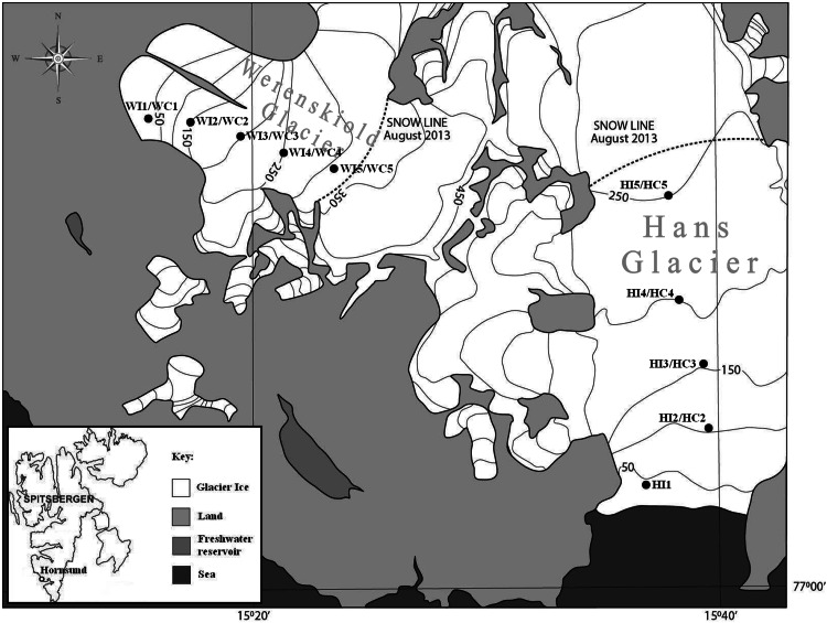 Microbial community development on the surface of Hans and Werenskiold Glaciers (Svalbard, Arctic): a comparison