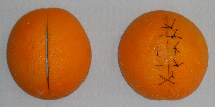 Methods & materials: This paper describes the construction of a simple and cost-effective suturing model for preclinical training. The construction of this model requires an orange peel, putty impression material and plaster of paris. This suturing model can be created in ten minutes.