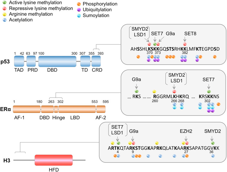 Keywords: ERα; G9a; Lysine methylation; SETD7; SMYD2; p53.