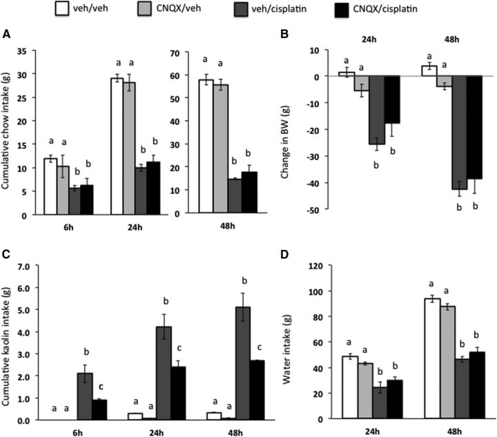 Keywords: amygdala; anorexia; cisplatin; dorsal vagal complex; glutamate; parabrachial nucleus.