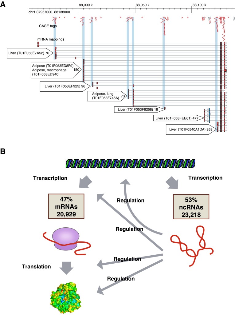 Big leaps in science happen when scientists from different backgrounds interact. In the past 15 years, the FANTOM Consortium has brought together scientists from different fields to analyze and interpret genomic data produced with novel technologies, including mouse full-length cDNAs and, more recently, expression profiling at single-nucleotide resolution by cap-analysis gene expression. The FANTOM Consortium has provided the most comprehensive mouse cDNA collection for functional studies and extensive maps of the human and mouse transcriptome comprising promoters, enhancers, as well as the network of their regulatory interactions. More importantly, serendipitous observations of the FANTOM dataset led us to realize that the mammalian genome is pervasively transcribed, even from retrotransposon elements, which were previously considered junk DNA. The majority of products from the mammalian genome are long non-coding RNAs (lncRNAs), including sense-antisense, intergenic, and enhancer RNAs. While the biological function has been elucidated for some lncRNAs, more than 98 % of them remain without a known function. We argue that large-scale studies are urgently needed to address the functional role of lncRNAs.