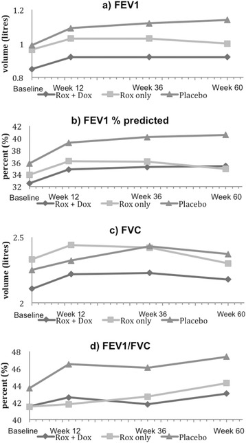 Conclusions: Twelve-weeks of prophylaxis with roxithromycin/doxycycline combination or roxithromycin alone did not reduce COPD exacerbations in patients with history of frequent exacerbations. These findings do not support the use of these antibiotics to prevent exacerbations in COPD patients.