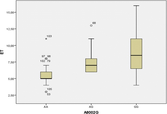 Methods: Our samples were subdivided into coronary patients (157) and healthy subjects (142). The quantification of the ET-1 concentration was performed by high performance liquid chromatography, the identification of the different genotypes of the polymorphism A(8002)G was made by PCR-RFLP. The association between the ET-1 concentration and identified genotypes was realized by adapted software for descriptive statistics, Statistical Package for the Sociological Sciences (SPSS v 21.0).