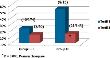 Results: The ε2 allele of ApoE was present in 62 (10.3 %) patients, ε3 allele in 581 (96.2 %), and ε4 allele in 114 (18.9 %). Their distribution among the 3 groups was uniform. Such uniformity was not observed when we considered endothelial function measured by asymmetric dimethylarginine. In group III, the frequency of ε4 allele was significantly lower in the third tertile compared with the first tertile (14.7 versus 53.3 %, P = 0.000; Pearson chi-square). In groups I and II, there was no difference in allele frequency according to ADMA levels. This association remained significant even after confouding factors corrections (OR 0.329, 95 % CI 0.155 - 0.699, P = 0.004).