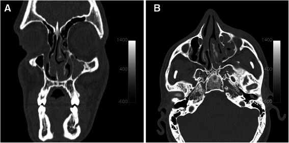Case presentation: A 19-year-old Caucasian man was referred to our department with localized pain and swelling in the left suborbital region following a physical fight in May 2014. A clinical examination revealed no abnormalities in his eyeballs or eye movement, palpation of the orbital contour revealed no fractures, and ophthalmological evaluation showed no evidence of diplopia. A computed tomography scan revealed fractures in the left orbital floor, periorbital tissue herniation without muscular entrapment and left maxillary hemosinus were observed. A hypodense soft tissue mass was lodged in the left orbital floor, which extended to the median wall of the maxillary sinus and penetrated the left lower turbinate. Surgical exploration of the foreign body was conducted, revealing the foreign body to be a pen cap.