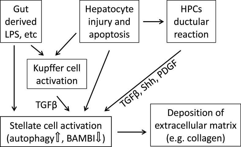 Keywords: Apoptosis; Autophagy; Genetic predisposition; Gut microbiota; Hepatic stellate cells.