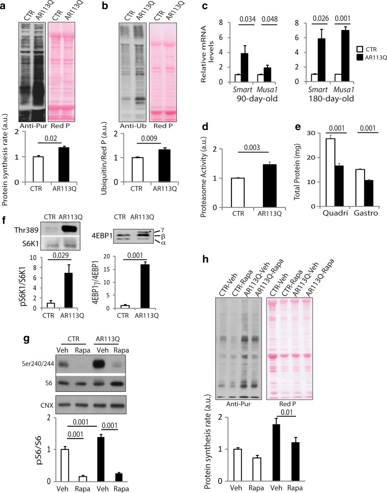 Keywords: Androgen receptor; High-fat diet; PGC1α; Rapamycin; Skeletal muscle; Spinal and bulbar muscular atrophy; mTOR.