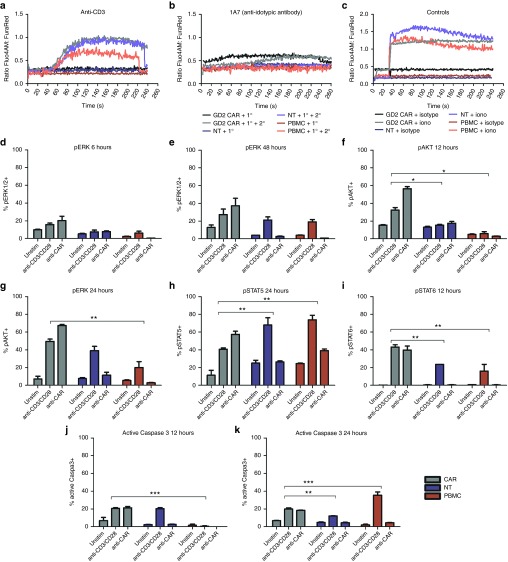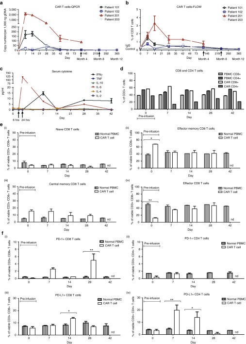 Chimeric antigen receptor (CAR) T cells have shown great promise in the treatment of hematologic malignancies but more variable results in the treatment of solid tumors and the persistence and expansion of CAR T cells within patients has been identified as a key correlate of antitumor efficacy. Lack of immunological "space", functional exhaustion, and deletion have all been proposed as mechanisms that hamper CAR T-cell persistence. Here we describe the events following activation of third-generation CAR T cells specific for GD2. CAR T cells had highly potent immediate effector functions without evidence of functional exhaustion in vitro, although reduced cytokine production reversible by PD-1 blockade was observed after longer-term culture. Significant activation-induced cell death (AICD) of CAR T cells was observed after repeated antigen stimulation, and PD-1 blockade enhanced both CAR T-cell survival and promoted killing of PD-L1(+) tumor cell lines. Finally, we assessed CAR T-cell persistence in patients enrolled in the CARPETS phase 1 clinical trial of GD2-specific CAR T cells in the treatment of metastatic melanoma. Together, these data suggest that deletion also occurs in vivo and that PD-1-targeted combination therapy approaches may be useful to augment CAR T-cell efficacy and persistence in patients.