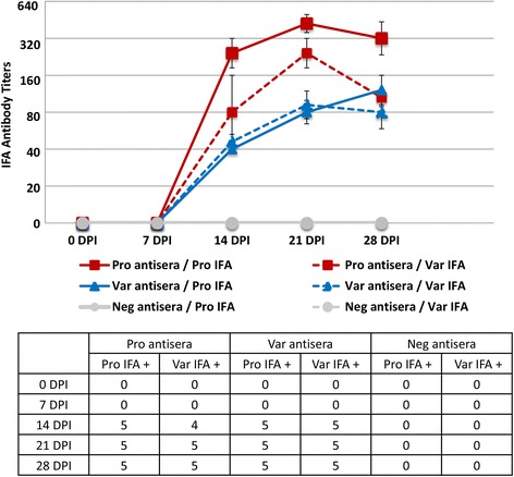 Results: A U.S. PEDV S-INDEL-variant strain was isolated in cell culture in this study. Three groups of PEDV-negative, 3-week-old pigs (five pigs per group) were inoculated orally with a U.S. PEDV prototype isolate (previously isolated in our lab), an S-INDEL-variant isolate or virus-negative culture medium. Serum samples collected at 0, 7, 14, 21 and 28 days post inoculation were evaluated by the following PEDV serological assays: 1) indirect fluorescent antibody (IFA) assays using the prototype and S-INDEL-variant strains as indicator viruses; 2) virus neutralization (VN) tests against the prototype and S-INDEL-variant viruses; 3) PEDV prototype strain whole virus based ELISA; 4) PEDV prototype strain S1-based ELISA; and 5) PEDV S-INDEL-variant strain S1-based ELISA. The positive antisera against the prototype strain reacted to and neutralized both prototype and S-INDEL-variant viruses, and the positive antisera against the S-INDEL-variant strain also reacted to and neutralized both prototype and S-INDEL-variant viruses, as examined by IFA antibody assays and VN tests. Antibodies against the two PEDV strains could be detected by all three ELISAs although detection rates varied to some degree.