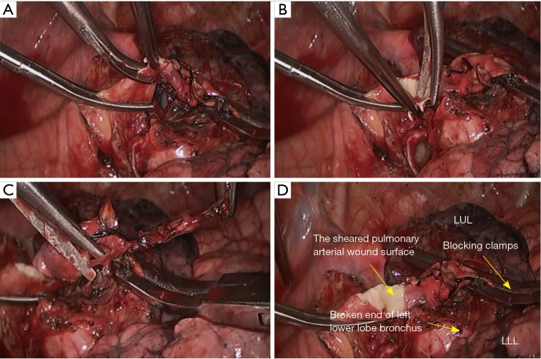 - Chen H, Xu X, He J, et al. Under general anesthesia with double lumen tube, video-assisted thoracoscopic bronchoplasty/pulmonary arterial angioplasty. Asvide 2016;3:150. Available online: http://www.asvide.com/articles/905