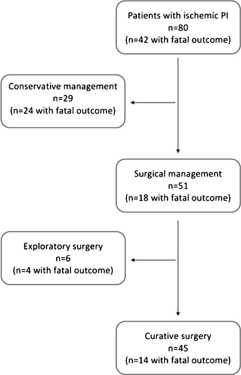 Objectives: To evaluate the clinical significance of pneumatosis intestinalis (PI) including the influence on treatment and outcome.