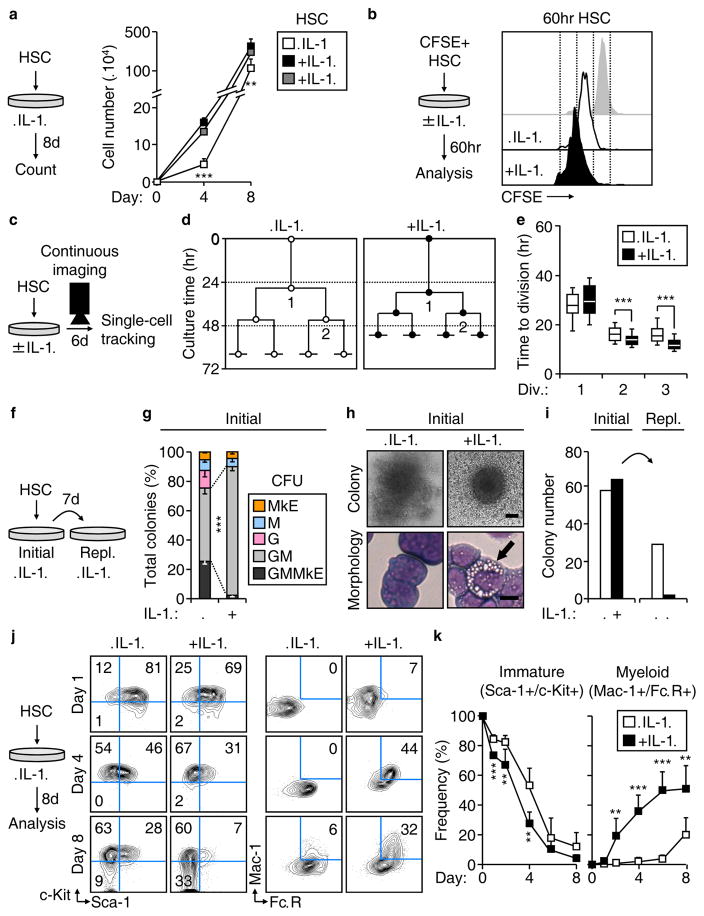 Chronic interleukin-1 exposure drives haematopoietic stem cells towards precocious myeloid differentiation at the expense of self-renewal