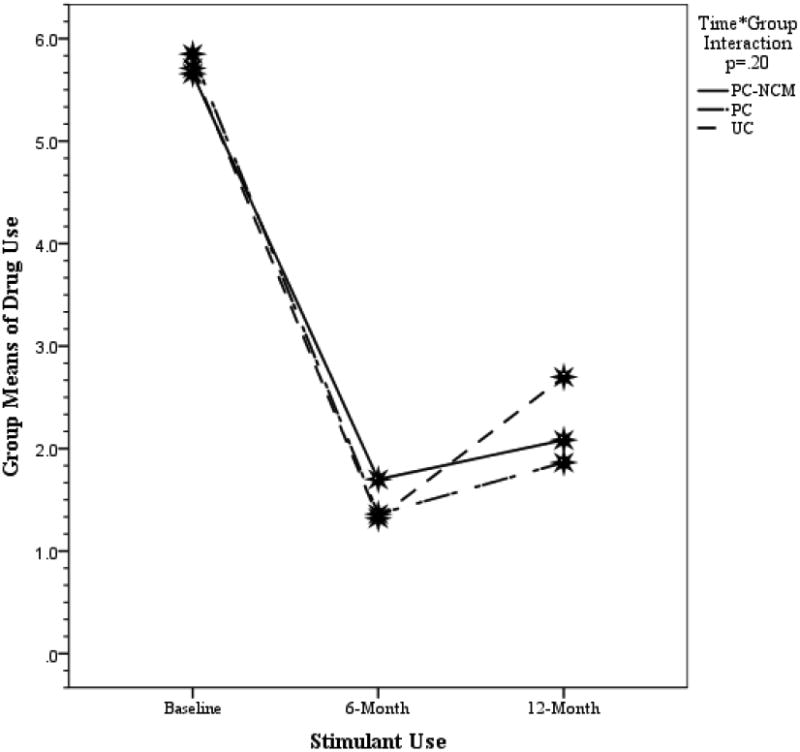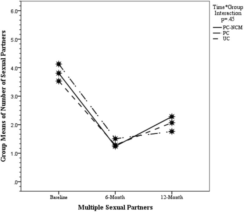 Results: Findings showed substantive and significant reductions in drug use and engaging in sex with multiple partners 6 months after enrollment into the study compared to the baseline data, but results did not differ by study condition. At 12-month follow-up, drug use and sex with multiple partners increased but remained less than at baseline levels.