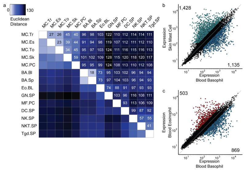 Expression profiling of constitutive mast cells reveals a unique identity within the immune system