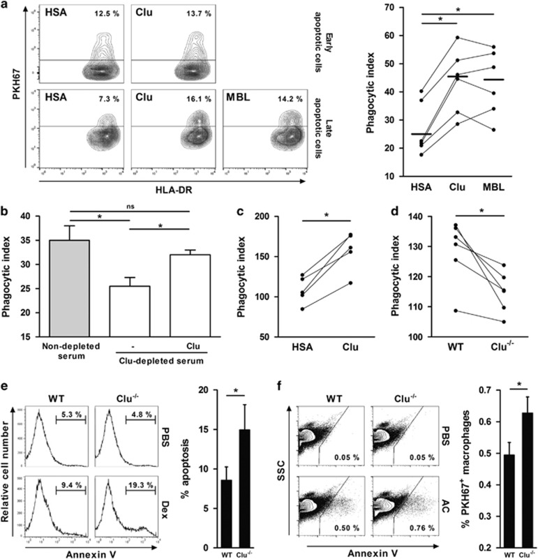 Clusterin (Clu), an extracellular chaperone, exhibits characteristics of soluble innate immunity receptors, as assessed by its ability to bind some bacteria strains. In this study, we report that Clu also binds specifically to late apoptotic cells but not to live, early apoptotic, or necrotic cells. Histones, which accumulate on blebs during the apoptotic process, represent privileged Clu-binding motifs at the surface of late apoptotic cells. As a consequence, Clu potentiates, both in vitro and in vivo, the phagocytosis of late apoptotic cells by macrophages. Moreover, the increased phagocytosis of late apoptotic cells induced by Clu favors the presentation and cross-presentation of apoptotic cell-associated antigens. Finally, we observed that, in a model of apoptotic cell-induced autoimmunity, and relative to control mice, Clu(-/-) mice develop symptoms of autoimmunity, including the generation of anti-dsDNA antibodies, deposition of immunoglobulins and complement components within kidneys, and splenomegaly. These results identify Clu as a new molecule partner involved in apoptotic cell efferocytosis and suggest a protective role for Clu in inflammation and autoimmune diseases.