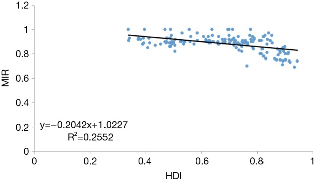 Conclusions: The highest MIR for lung cancer was for medium human development countries. Linear regression analysis showed a reverse significant relationship between MIR and HDI.