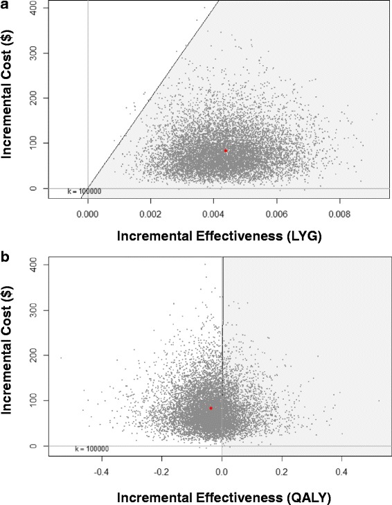Results: Incremental cost (screened vs. unscreened) was $82.17 per woman in the model. Incremental effectiveness was 0.004 LYG, and was equivalent to zero in terms of QALY. An ICER of $20,561/LYG was calculated, while no meaningful incremental cost-effectiveness ratio (ICER) could be calculated for quality-adjusted survival.