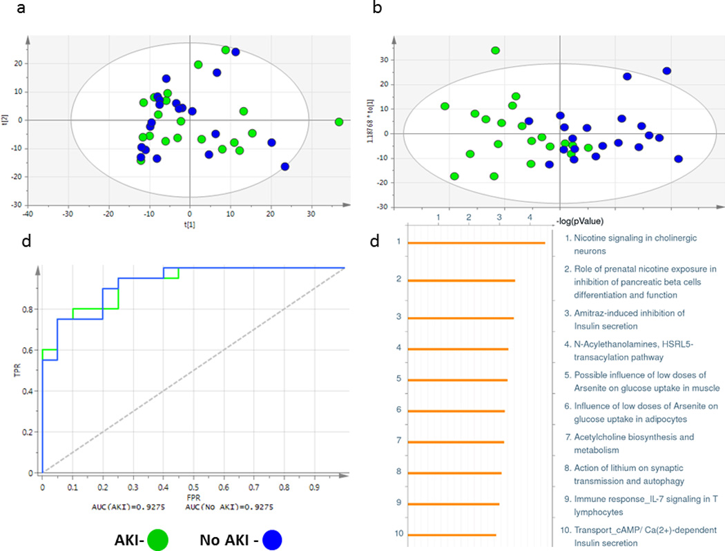 Conclusions: Metabolomics was able to differentiate the urinary profiles of neonates with and without an AKI diagnosis and metabolic developmental profiles correlated with gestational age. Further studies in larger cohorts are needed to validate these results.