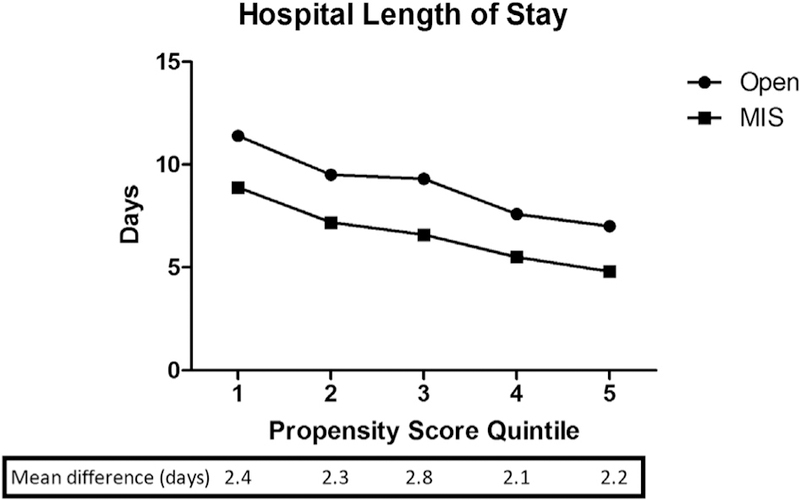 Conclusions: This retrospective study of patients undergoing colectomy for colon cancer demonstrates significantly improved outcomes associated with a MIS approach, even when controlling for baseline differences in illness severity. When feasible, minimally invasive colectomy should be considered gold standard for the surgical treatment of colon cancer.