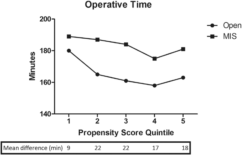 Results: A total of 11,031 patients were identified for inclusion in the study, with an overall MIS rate of 65.3% (n = 7200). On both univariate and multivariate analysis, MIS approach was associated with fewer postoperative complications and lower mortality. In the risk-adjusted multivariate analysis, MIS approach was associated with an odds ratio of 0.598 for any postoperative morbidity compared to open (P < 0.001).