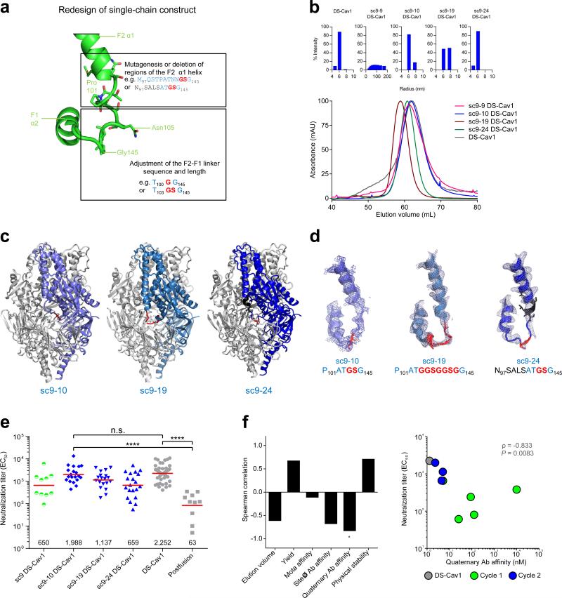 Structure-based design of vaccines, particularly the iterative optimization used so successfully in the structure-based design of drugs, has been a long-sought goal. We previously developed a first-generation vaccine antigen called DS-Cav1, comprising a prefusion-stabilized form of the fusion (F) glycoprotein, which elicits high-titer protective responses against respiratory syncytial virus (RSV) in mice and macaques. Here we report the improvement of DS-Cav1 through iterative cycles of structure-based design that significantly increased the titer of RSV-protective responses. The resultant second-generation 'DS2'-stabilized immunogens have their F subunits genetically linked, their fusion peptides deleted and their interprotomer movements stabilized by an additional disulfide bond. These DS2 immunogens are promising vaccine candidates with superior attributes, such as their lack of a requirement for furin cleavage and their increased antigenic stability against heat inactivation. The iterative structure-based improvement described here may have utility in the optimization of other vaccine antigens.