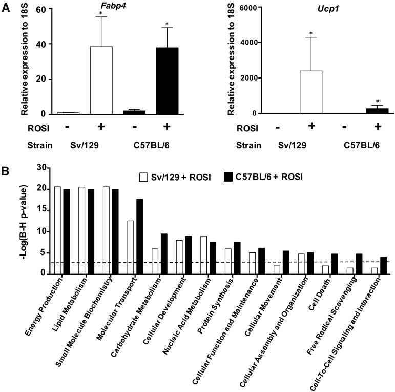 Results: Forty percent of commonly used brite gene biomarkers exhibited an exon or strain-specific regulation. No biomarkers were positively related to weight loss in human scWAT. Greater weight loss was significantly associated with less uncoupling protein 1 expression (P = 0.006, R(2) = 0.09). In a follow-up global analysis, there were 161 genes that covaried with weight loss that were linked to greater CCAAT/enhancer binding protein α activity (z = 2.0, P = 6.6 × 10(-7)), liver X receptor α/β agonism (z = 2.1, P = 2.8 × 10(-7)), and inhibition of leptin-like signaling (z = -2.6, P = 3.9 × 10(-5)).