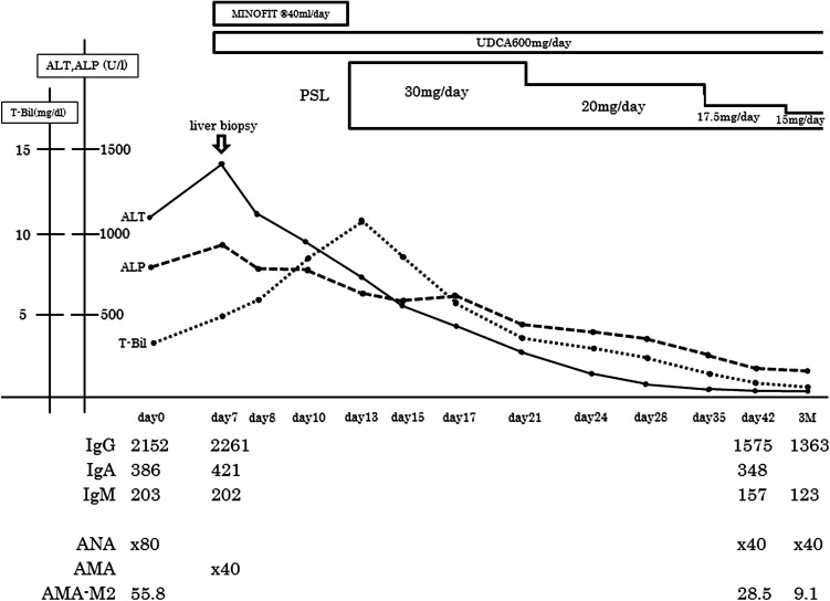 Familial occurrence of autoimmune liver disease with overlapping features of primary biliary cholangitis and autoimmune hepatitis in a mother and her daughter