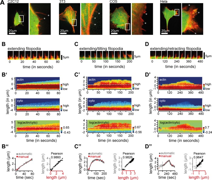 Automated analysis of filopodial length and spatially resolved protein concentration via adaptive shape tracking