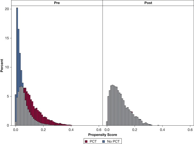Results: A total of 33,569 PCT-managed patients were compared with 98,543 propensity score-matched non-PCT patients. In multivariable regression analysis, PCT utilization was associated with significantly decreased total length of stay (11.6 days [95% CI, 11.4 to 11.7] vs 12.7 days [95% CI, 12.6 to 12.8]; 95% CI for difference, 1 to 1.3; P < .001) and ICU length of stay (5.1 days [95% CI, 5.1 to 5.2] vs 5.3 days [95% CI, 5.3 to 5.4]; 95% CI for difference, 0.1 to 0.3; P < .03), and lower hospital costs ($30,454 [95% CI, 29,968 to 31,033] vs $33,213 [95% CI, 32,964 to 33,556); 95% CI for difference, 2,159 to 3,321; P < .001). There was significantly less total antibiotic exposure (16.2 days [95% CI, 16.1 to 16.5] vs 16.9 days [95% CI, 16.8 to 17.1]; 95% CI for difference, -0.9 to 0.4; P = .006) in PCT-managed patients. Patients in the PCT group were more likely to be discharged to home (44.1% [95% CI, 43.7 to 44.6] vs 41.3% [95% CI, 41 to 41.6]; 95% CI for difference, 2.3 to 3.3; P = .006). Mortality was not different in an analysis including the 96% of patients who had an independent measure of mortality risk available (19.1% [95% CI, 18.7 to 19.4] vs 19.1% [95% CI, 18.9 to 19.3]; 95% CI for difference, -0.5 to 0.4; P = .93).