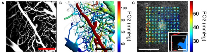 Oxygen is delivered to brain tissue by a dense network of microvessels, which actively control cerebral blood flow (CBF) through vasodilation and contraction in response to changing levels of neural activity. Understanding these network-level processes is immediately relevant for (1) interpretation of functional Magnetic Resonance Imaging (fMRI) signals, and (2) investigation of neurological diseases in which a deterioration of neurovascular and neuro-metabolic physiology contributes to motor and cognitive decline. Experimental data on the structure, flow and oxygen levels of microvascular networks are needed, together with theoretical methods to integrate this information and predict physiologically relevant properties that are not directly measurable. Recent progress in optical imaging technologies for high-resolution in vivo measurement of the cerebral microvascular architecture, blood flow, and oxygenation enables construction of detailed computational models of cerebral hemodynamics and oxygen transport based on realistic three-dimensional microvascular networks. In this article, we review state-of-the-art optical microscopy technologies for quantitative in vivo imaging of cerebral microvascular structure, blood flow and oxygenation, and theoretical methods that utilize such data to generate spatially resolved models for blood flow and oxygen transport. These "bottom-up" models are essential for the understanding of the processes governing brain oxygenation in normal and disease states and for eventual translation of the lessons learned from animal studies to humans.