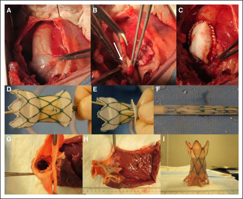 Methods and results: Thirteen sheep underwent baseline cardiac magnetic resonance imaging, surgical pulmonary valvectomy, and transannular patch repair. One month after transannular patch repair, the hTPV was implanted, followed by serial magnetic resonance imaging and computed tomography imaging at 1, 5, and 8 month(s). hTPV implantation was successful in 11 animals (85%). There were 2 procedural deaths related to ventricular fibrillation. Seven animals survived the entire follow-up protocol, 5 with functioning hTPV devices. Two animals had occlusion of hTPV with aneurysm of main pulmonary artery. A strong decline in pulmonary regurgitant fraction was observed after hTPV implantation (40.5% versus 8.3%; P=0.011). Right ventricular end diastolic volume increased by 49.4% after transannular patch repair (62.3-93.1 mL/m2; P=0.028) but was reversed to baseline values after hTPV implantation (to 65.1 mL/m2 at 8 months, P=0.045). Both right ventricular ejection fraction and left ventricular ejection fraction were preserved after hTPV implantation.