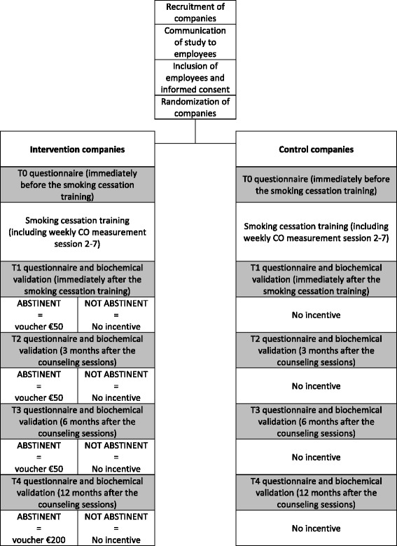 Discussion: The present paper describes the methods and design of this cluster-randomized trial in detail. We hypothesize that the financial incentive for abstinence in the form of vouchers increases abstinence rates over and above the group training. The results of this study can provide important recommendations for enhancement of employee tobacco cessation.