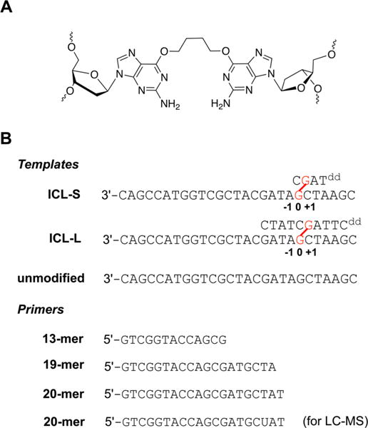 DNA interstrand cross-links (ICLs) are cytotoxic DNA lesions derived from reactions of DNA with a number of anti-cancer reagents as well as endogenous bifunctional electrophiles. Deciphering the DNA repair mechanisms of ICLs is important for understanding the toxicity of DNA cross-linking agents and for developing effective chemotherapies. Previous research has focused on ICLs cross-linked with the N7 and N2 atoms of guanine as well as those formed at the N6 atom of adenine; however, little is known about the mutagenicity of O6-dG-derived ICLs. Although less abundant, O6-alkylated guanine DNA lesions are chemically stable and highly mutagenic. Here, O6-2'-deoxyguanosine-butylene-O6-2'-deoxyguanosine (O6-dG-C4-O6-dG) is designed as a chemically stable ICL, which can be induced by the action of bifunctional alkylating agents. We investigate the DNA replication-blocking and mutagenic properties of O6-dG-C4-O6-dG ICLs during an important step in ICL repair, translesion DNA synthesis (TLS). The model replicative DNA polymerase (pol) Sulfolobus solfataricus P2 DNA polymerase B1 (Dpo1) is able to incorporate a correct nucleotide opposite the cross-linked template guanine of ICLs with low efficiency and fidelity but cannot extend beyond the ICLs. Translesion synthesis by human pol κ is completely inhibited by O6-dG-C4-O6-dG ICLs. Moderate bypass activities are observed for human pol η and S. solfataricus P2 DNA polymerase IV (Dpo4). Among the pols tested, pol η exhibits the highest bypass activity; however, 70% of the bypass products are mutagenic containing substitutions or deletions. The increase in the size of unhooked repair intermediates elevates the frequency of deletion mutation. Lastly, the importance of pol η in O6-dG-derived ICL bypass is demonstrated using whole cell extracts of Xeroderma pigmentosum variant patient cells and those complemented with pol η. Together, this study provides the first set of biochemical evidence for the mutagenicity of O6-dG-derived ICLs.
