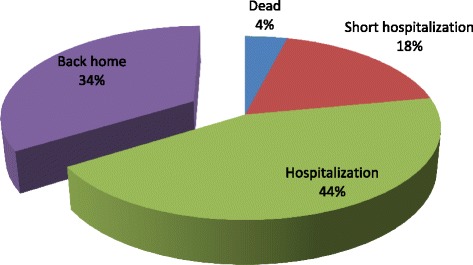 Methods: We conducted a retrospective study by assessment of patient files. We studied admissions to four emergency departments in an area of France (Puy-de-Dôme) between September 2011 and August 2013. Reasons for transfer and diagnostic conclusion by emergency doctors were noted. We collected date of admission, time spent, investigations and treatments performed and patients' outcomes after the medical conclusions. We also determined whether patients called the hospital-at-home service before going to the emergency department. From these data we discerned potentially avoidable and unavoidable consultations.