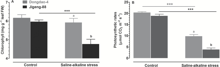 Keywords: Oryza sativa; Dongdao-4; Jigeng-88; iron acquisition; iron deficiency; rice; saline-alkaline stress..
