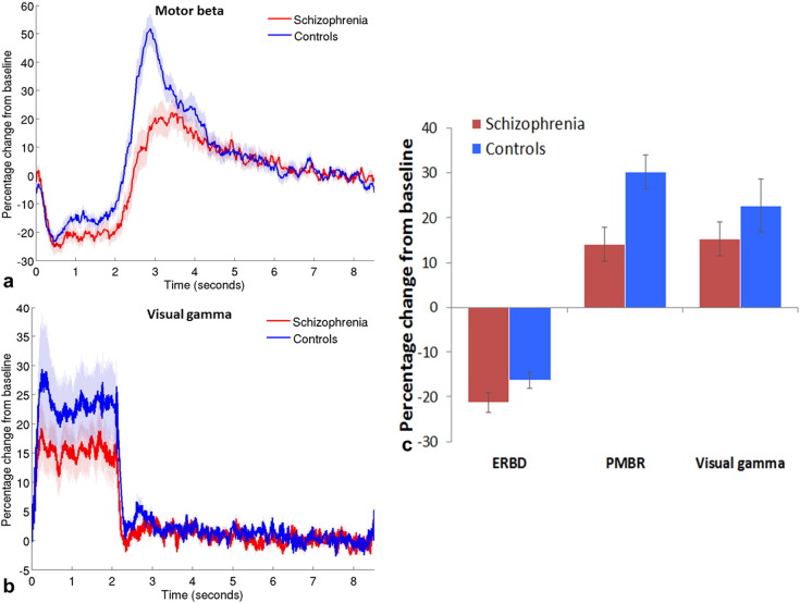Keywords: Electrophysiological processes; Magnetoencephalography; Motor cortex; Schizophrenia; Visual cortex.