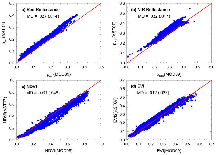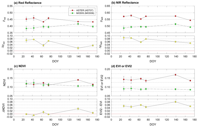 Keywords: ASTER; MODIS; product inter-comparison; surface reflectance; vegetation index.