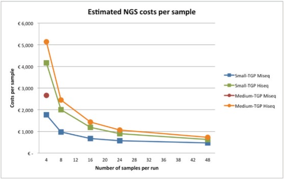 Next-generation sequencing (NGS) has reached the molecular diagnostic laboratories. Although the NGS technology aims to improve the effectiveness of therapies by selecting the most promising therapy, concerns are that NGS testing is expensive and that the 'benefits' are not yet in relation to these costs. In this study, we give an estimation of the costs and an institutional and national budget impact of various types of NGS tests in non-small-cell lung cancer (NSCLC) and melanoma patients within The Netherlands. First, an activity-based costing (ABC) analysis has been conducted on the costs of two examples of NGS panels (small- and medium-targeted gene panel (TGP)) based on data of The Netherlands Cancer Institute (NKI). Second, we performed a budget impact analysis (BIA) to estimate the current (2015) and future (2020) budget impact of NGS on molecular diagnostics for NSCLC and melanoma patients in The Netherlands. Literature, expert opinions, and a data set of patients within the NKI (n = 172) have been included in the BIA. Based on our analysis, we expect that the NGS test cost concerns will be limited. In the current situation, NGS can indeed result in higher diagnostic test costs, which is mainly related to required additional tests besides the small TGP. However, in the future, we expect that the use of whole-genome sequencing (WGS) will increase, for which it is expected that additional tests can be (partly) avoided. Although the current clinical benefits are expected to be limited, the research potentials of NGS are already an important advantage.
