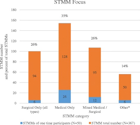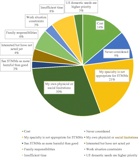 Methods: An online survey solicited information on physician participation in STMMS as well as demographic and professional features. Responses were descriptively tabulated and multivariate regressions were performed to model for physician profiles related to STMM participation.