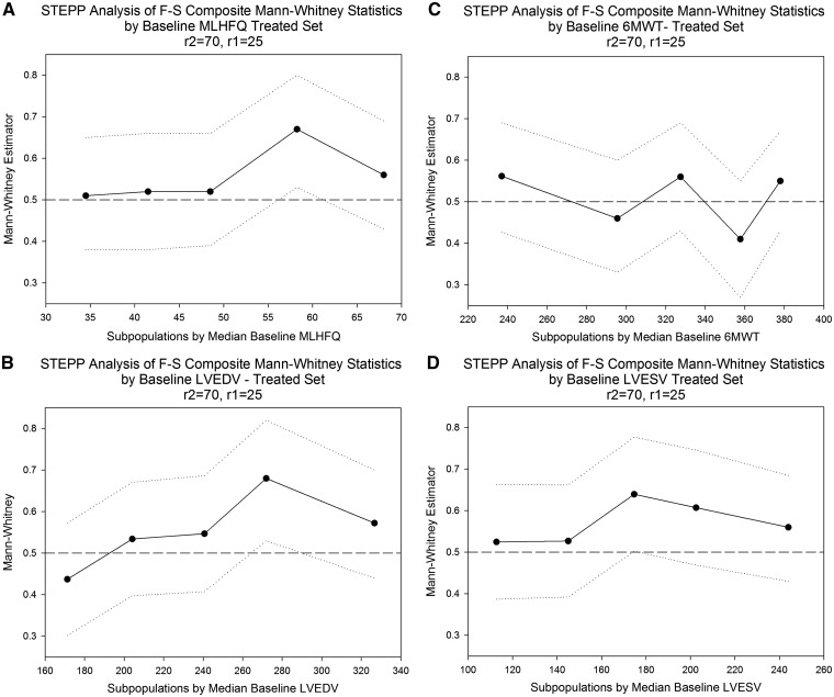 Methods and results: This multinational, randomized, double-blind, sham-controlled study was conducted in 39 hospitals. Patients with symptomatic ischaemic heart failure on guideline-directed therapy (n = 484) were screened; n = 348 underwent bone marrow harvest and mesenchymal stem cell expansion. Those achieving > 24 million mesenchymal stem cells (n = 315) were randomized to cardiopoietic cells delivered endomyocardially with a retention-enhanced catheter (n = 157) or sham procedure (n = 158). Procedures were performed as randomized in 271 patients (n = 120 cardiopoietic cells, n = 151 sham). The primary efficacy endpoint was a Finkelstein-Schoenfeld hierarchical composite (all-cause mortality, worsening heart failure, Minnesota Living with Heart Failure Questionnaire score, 6-min walk distance, left ventricular end-systolic volume, and ejection fraction) at 39 weeks. The primary outcome was neutral (Mann-Whitney estimator 0.54, 95% confidence interval [CI] 0.47-0.61 [value > 0.5 favours cell treatment], P = 0.27). Exploratory analyses suggested a benefit of cell treatment on the primary composite in patients with baseline left ventricular end-diastolic volume 200-370 mL (60% of patients) (Mann-Whitney estimator 0.61, 95% CI 0.52-0.70, P = 0.015). No difference was observed in serious adverse events. One (0.9%) cardiopoietic cell patient and 9 (5.4%) sham patients experienced aborted or sudden cardiac death.